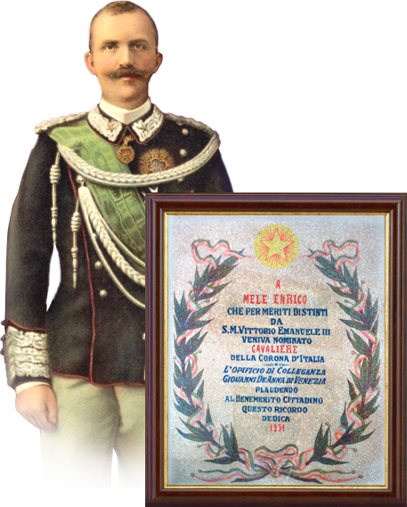 Founder of MELE company Enrico Mele was awarded with a title of Cavalier of Order of The Crown of Italy by king of Italy Victor Emmanuel III. It is a very prestigious award given only to most distinguished members of the society with impeccable reputation, which further emphasizes craftsmanship of MELE.