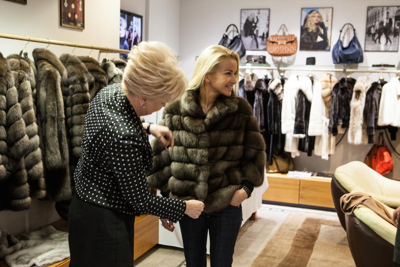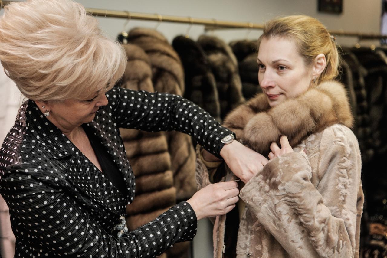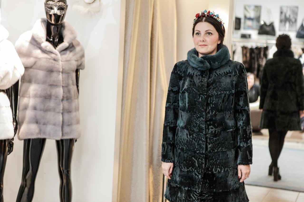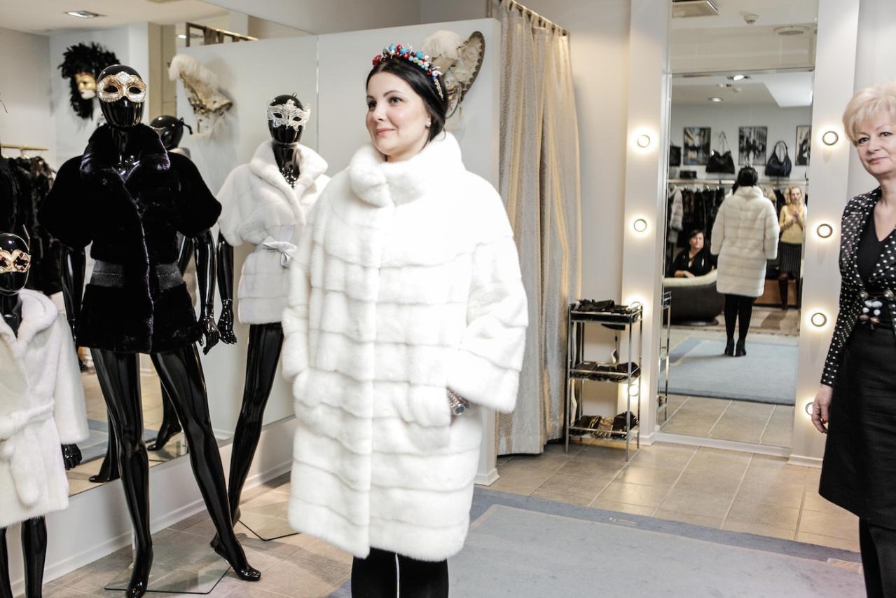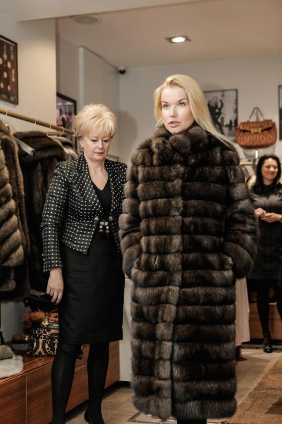 Финальная примерка готовой шубы в рижском бутике MELE.