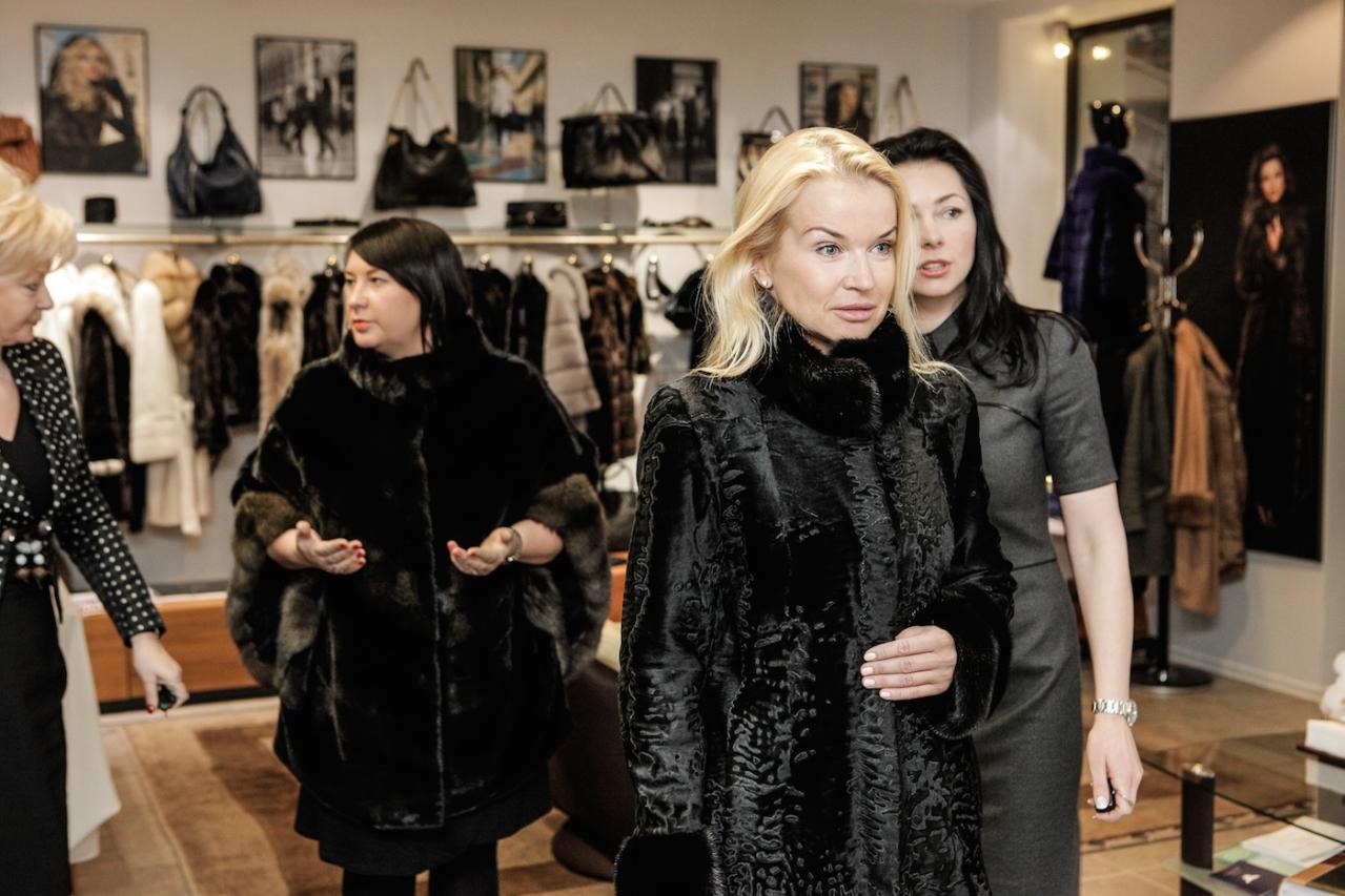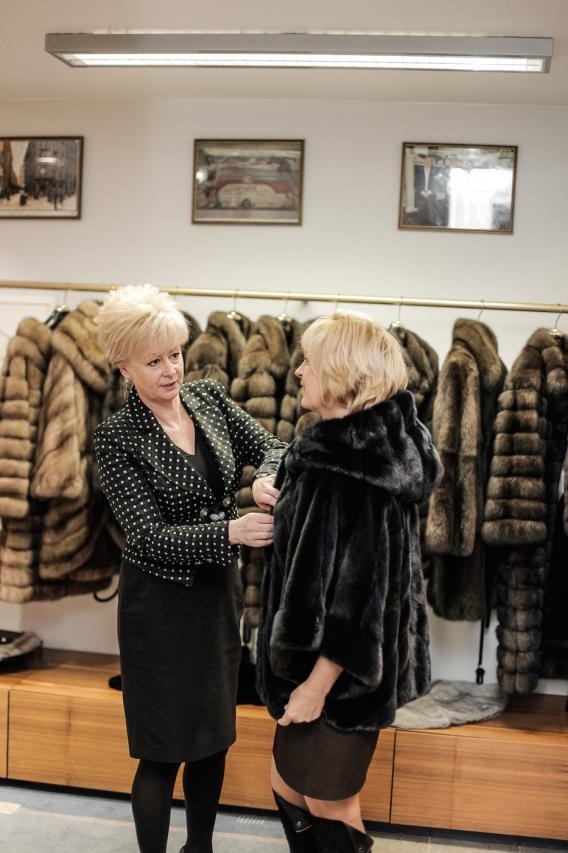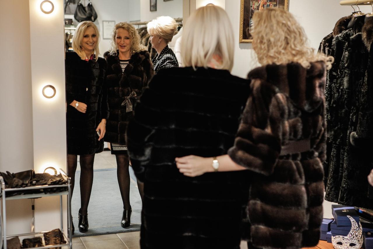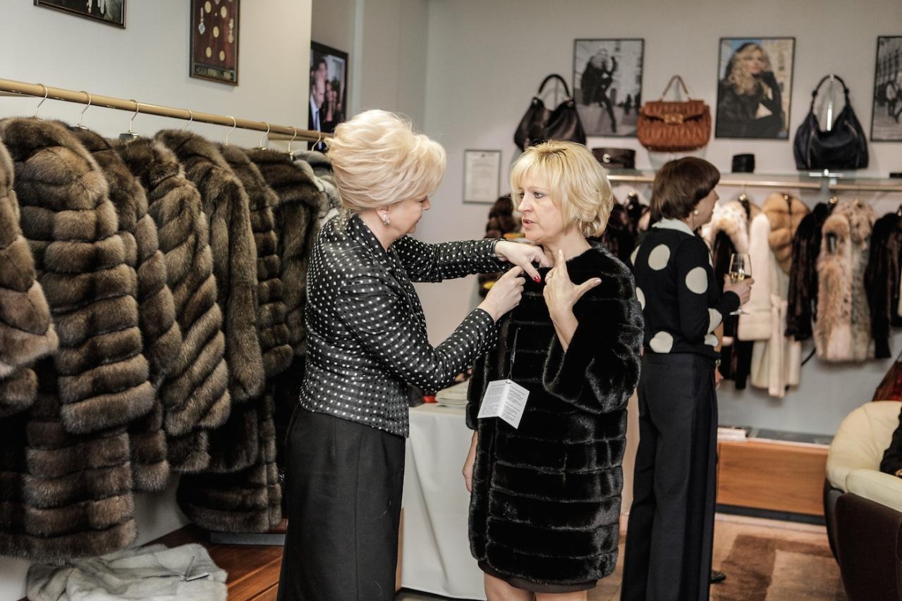 Финальная примерка готовой шубы в рижском бутике MELE.