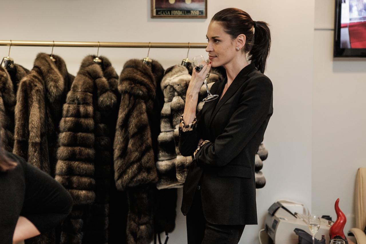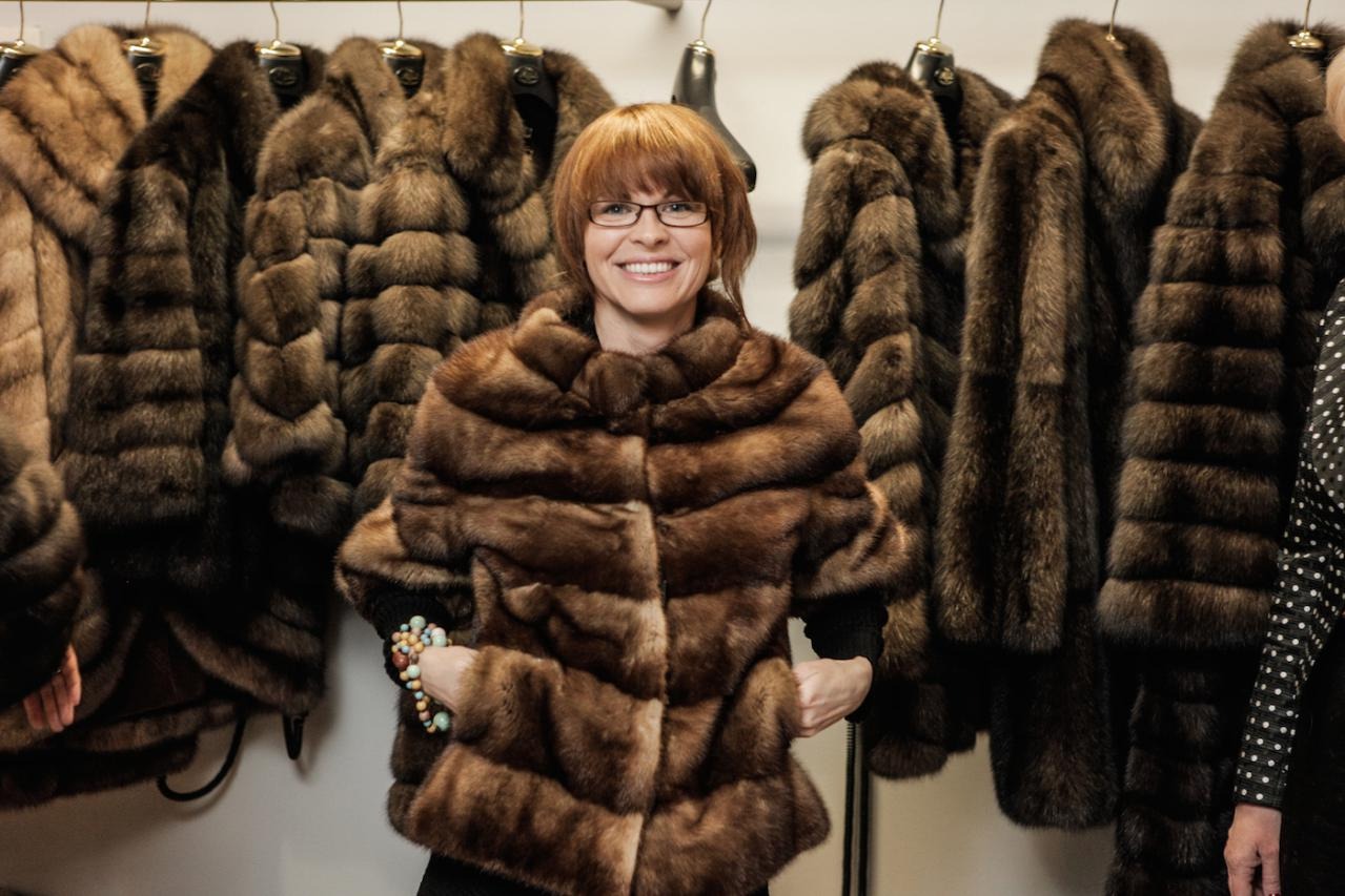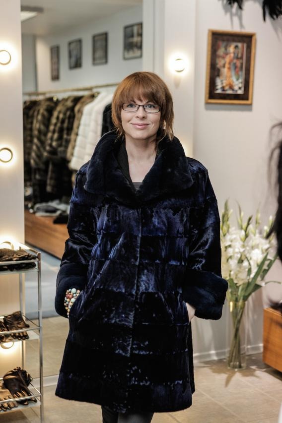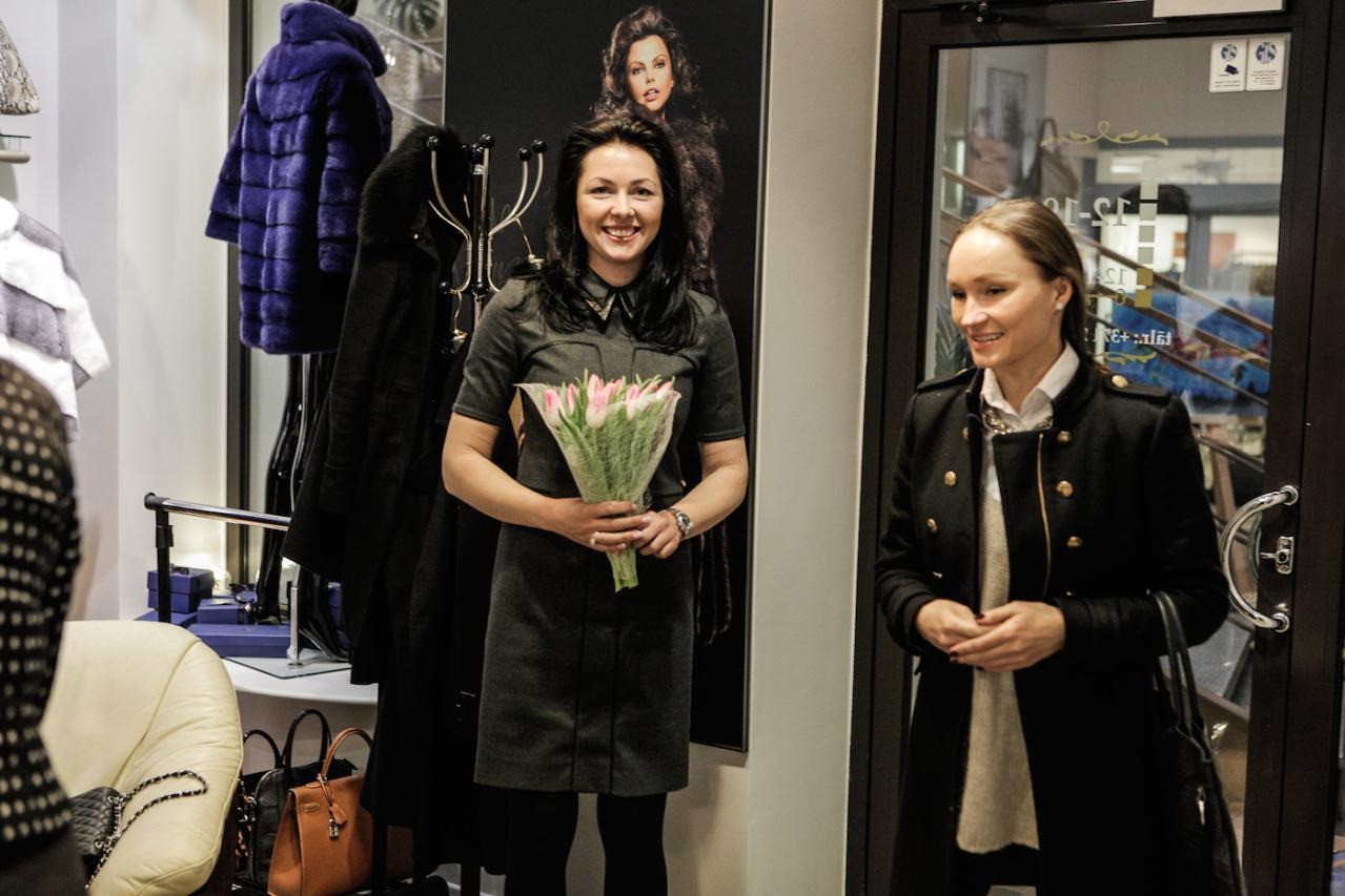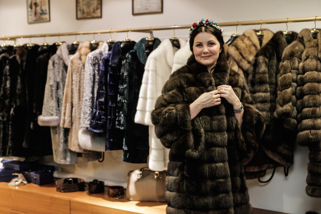 Финальная примерка готовой шубы в рижском бутике MELE.